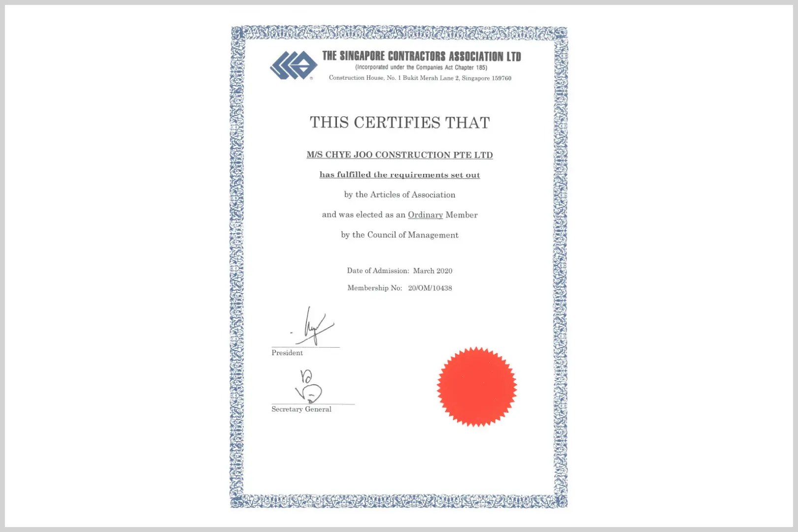 8. Certificate of Appreciation - Support Towards People's Association Marsiling Community Club Building Fund